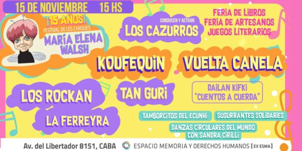 💫 Porque su obra es memoria, identidad, arte y cultura popular… 📣 están todxs invitadxs a cantar, bailar y disfrutar en familia de una tarde llena de música, historias, poesía e intervenciones bajo los árboles del Espacio Memoria 🫶 ¡Bienvenidxs! 🏡15° Festival de les chiques María Elena Walsh 🌳🎶 sáb 15/NOV 🕒 15 horas 💥[…]
