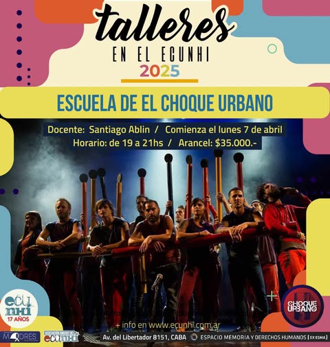 Percusión con objetos no convencionales, percusión corporal, teatro, ritmo y movimiento 👏👣 ¡Vuelve la Escuela de El Choque Urbano en el ECuNHi!